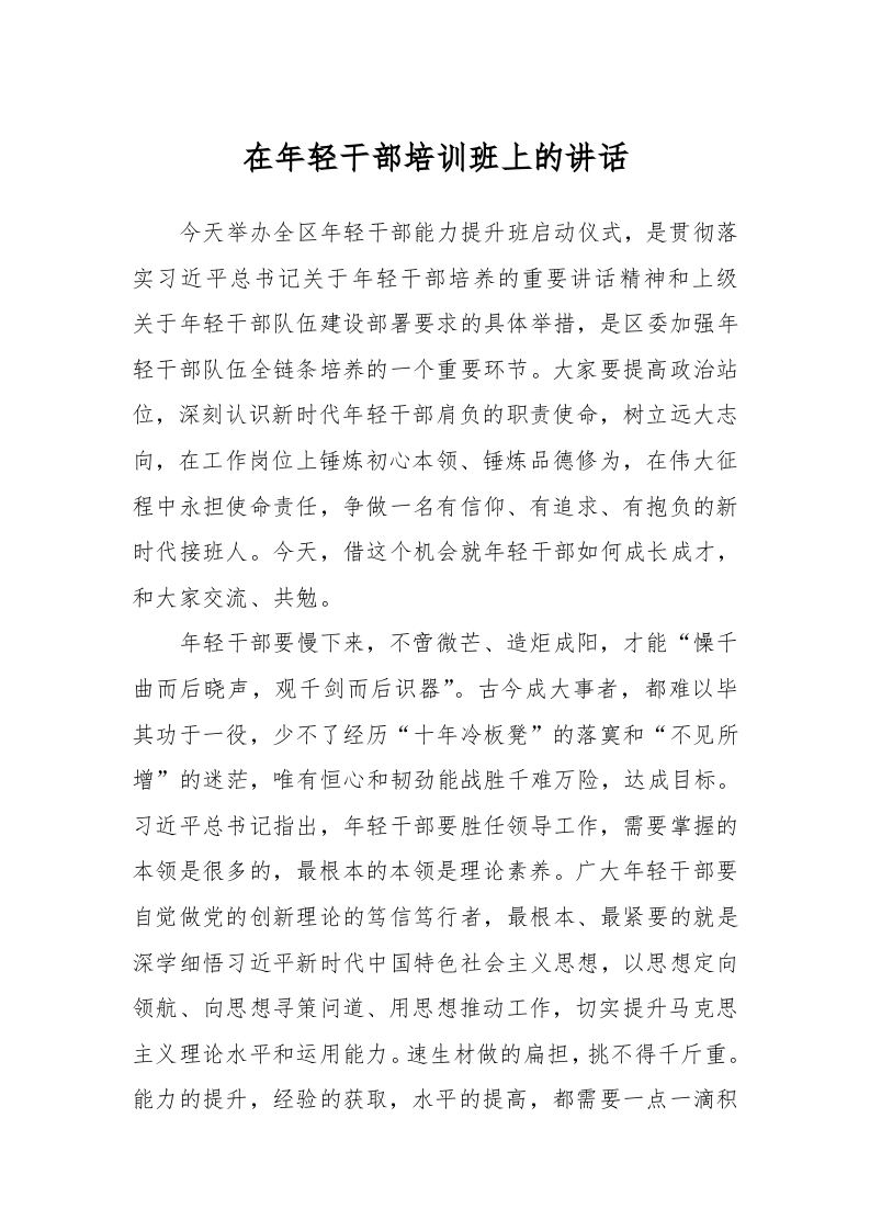 / 在年轻干部培训班上的讲话