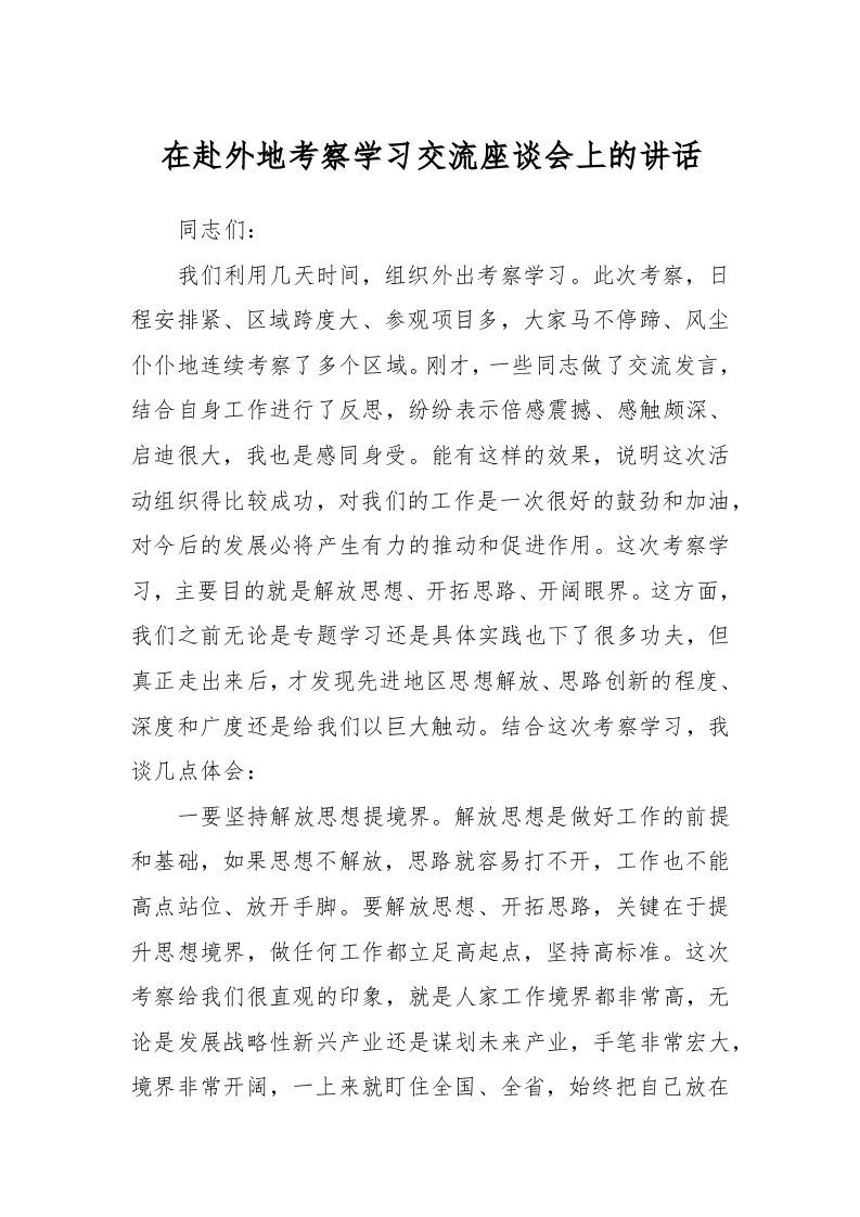 / 在赴外地考察学习交流座谈会上的讲话