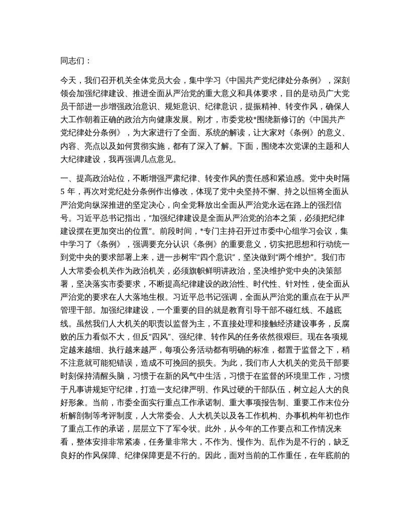 在新修订《中国共产党纪律处分条例》专题学习会上的讲话