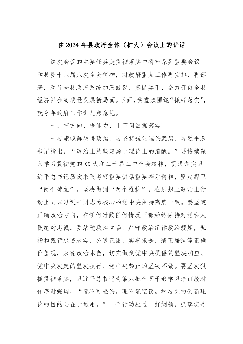 / 在2024年县政府全体(扩大)会议上的讲话