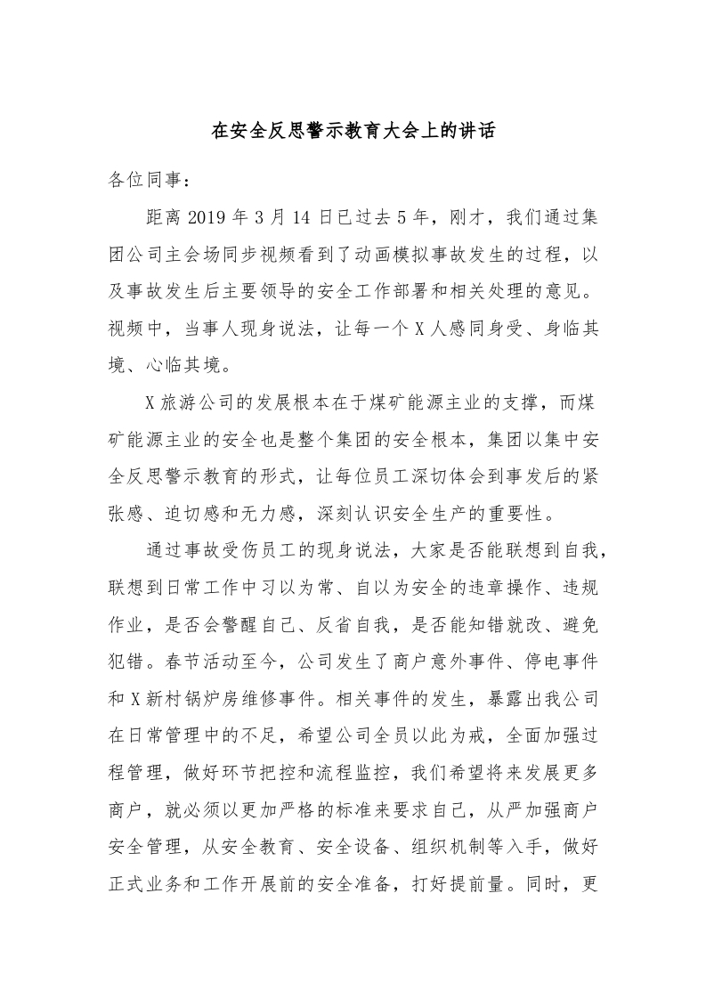 / 在安全反思警示教育大会上的讲话