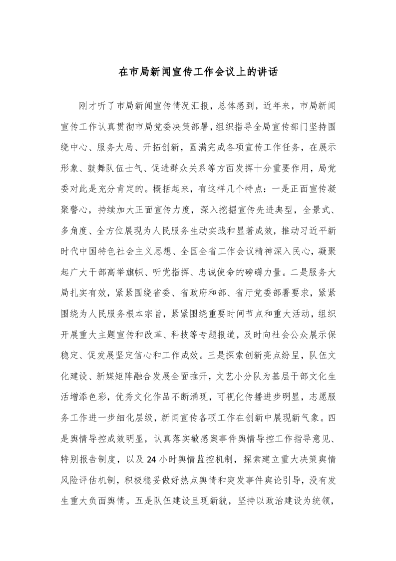 / 在市局新闻宣传工作会议上的讲话