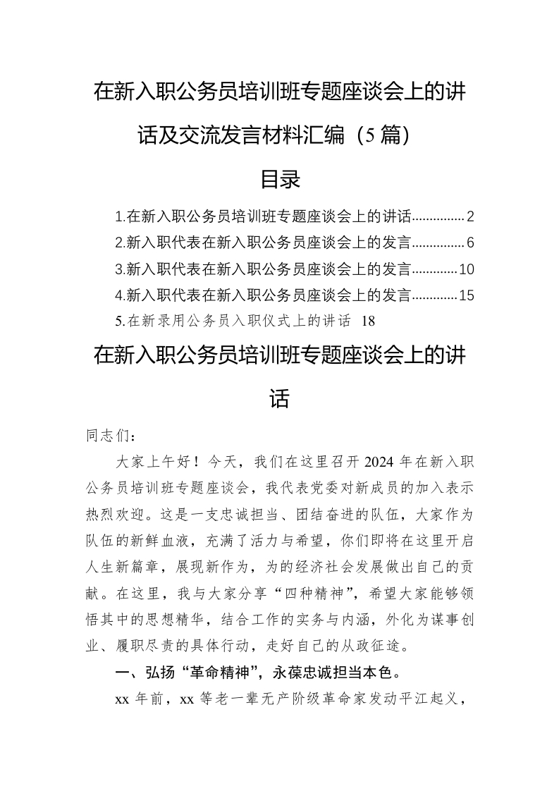 / 在新入职公务员培训班专题座谈会上的讲话及交流发言材料汇编(5篇)