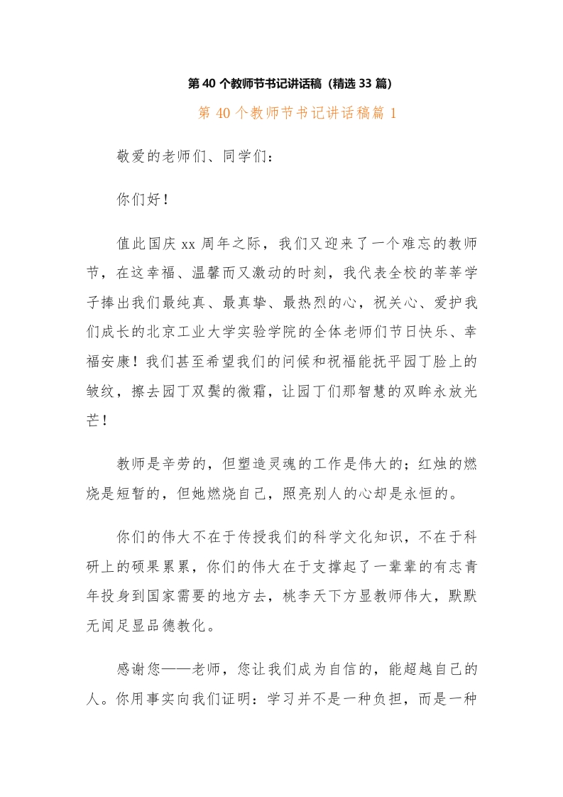 / (33篇)第40个教师节书记讲话稿