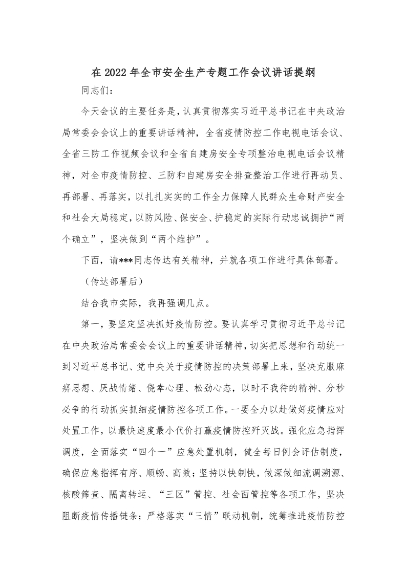 / 在2022年全市安全生产专题工作会议讲话提纲