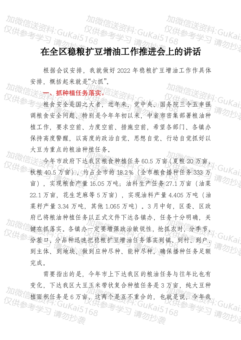 / 在全区稳粮扩豆增油工作推进会上的讲话