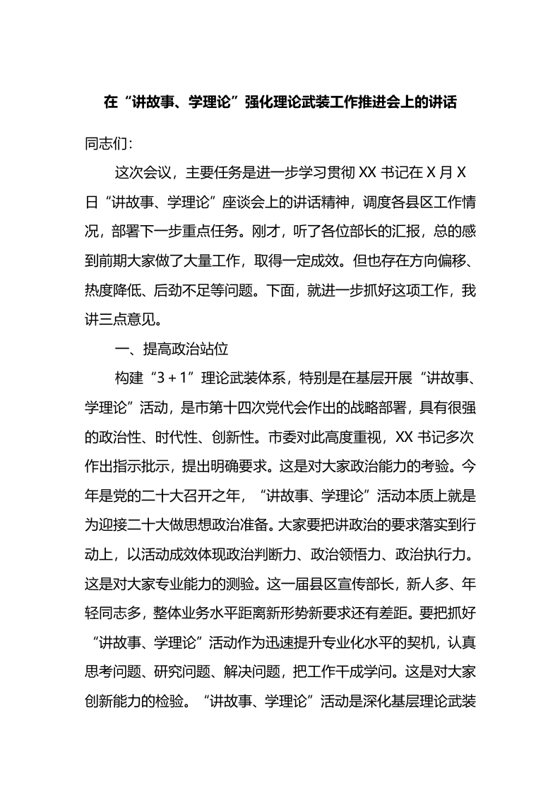 / 在“讲故事、学理论”强化理论武装工作推进会上的讲话