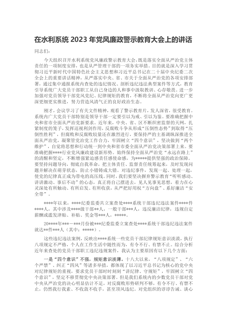 / 在水利系统2023年党风廉政警示教育大会上的讲话