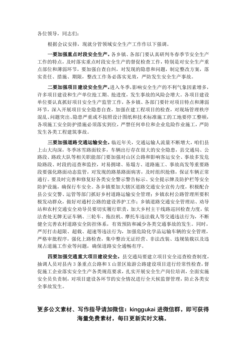 / 常务副县长在全县第一季度安全生产例会上的讲话