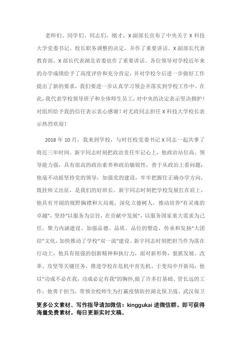 / 大学党委书记在全校教师干部大会上的讲话