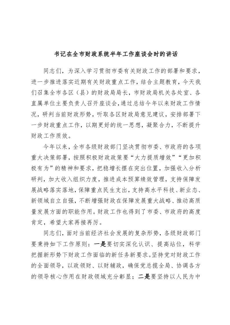 / 书记在全市财政系统半年工作座谈会时的讲话