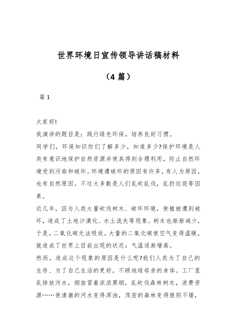 / (4篇)世界环境日宣传领导讲话稿材料