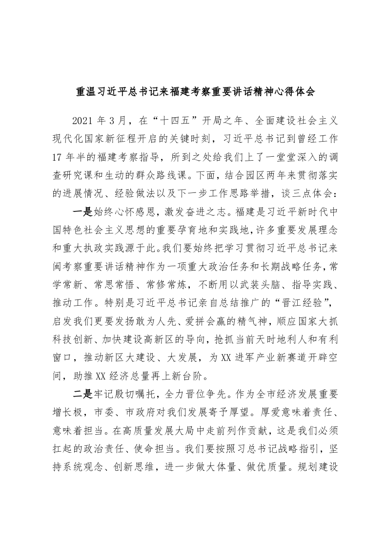 / 重温习近平总书记来福建考察重要讲话精神心得体会2