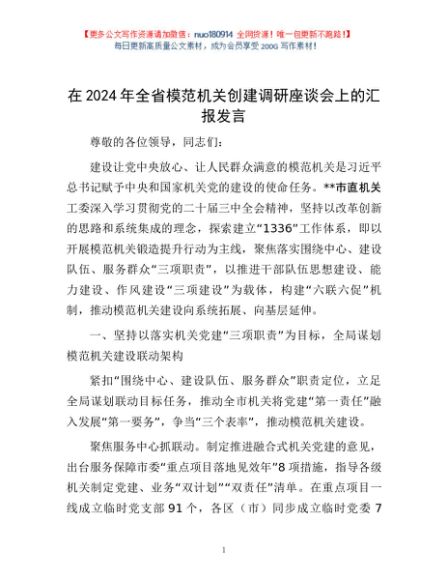 / 在2024年全省模范机关创建调研座谈会上的汇报发言
