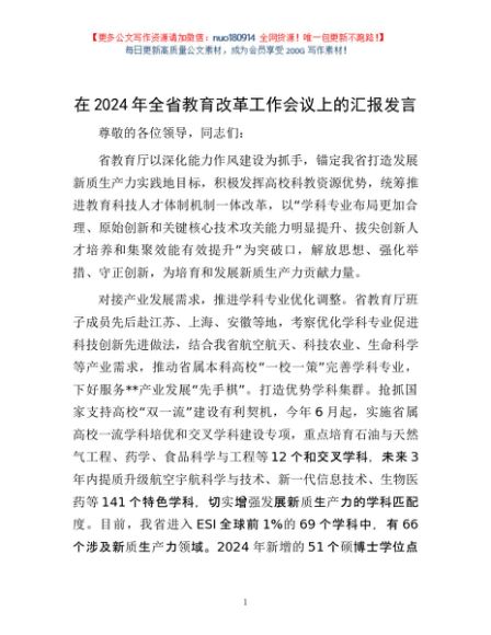 / 在2024年全省教育改革工作会议上的汇报发言