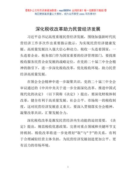 / 深化税收改革助力民营经济发展【更多资料+微信:nuo180914】