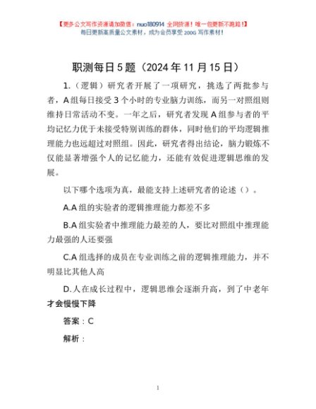 / 职测每日5题(2024年11月15日)