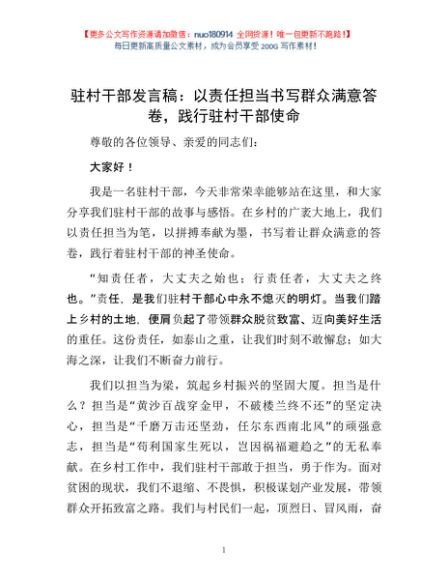 驻村干部发言稿:以责任担当书写群众满意答卷,践行驻村干部使命