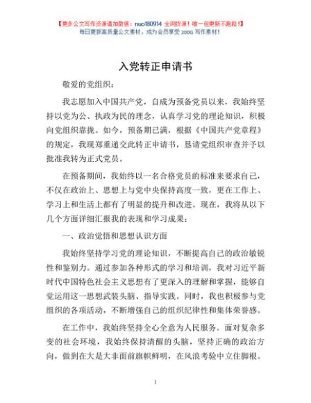 / 入党转正申请书