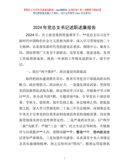 / 2024年党总支书记述职述廉报告
