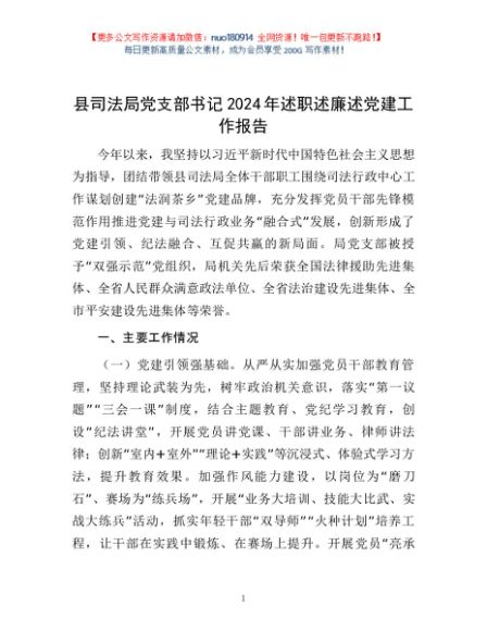 / 县司法局党支部书记2024年述职述廉述党建工作报告