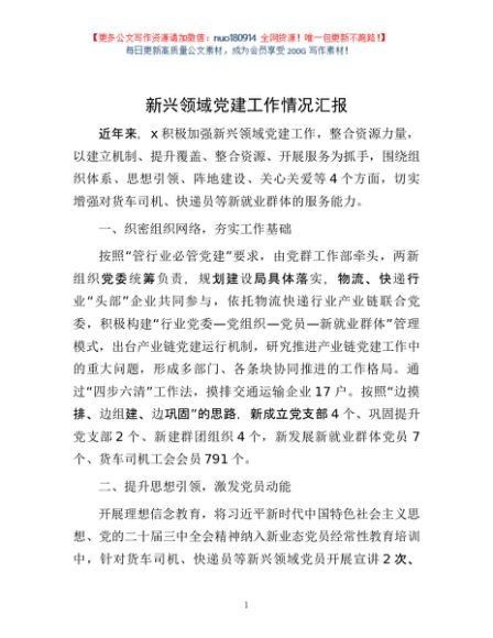 / 新兴领域党建工作情况汇报