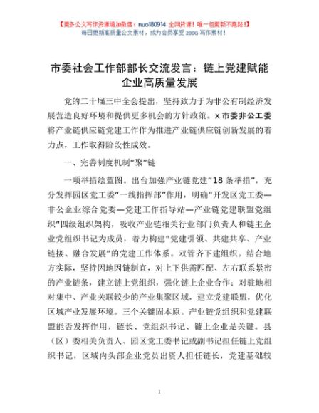 市委社会工作部部长交流发言:链上党建赋能企业高质量发展