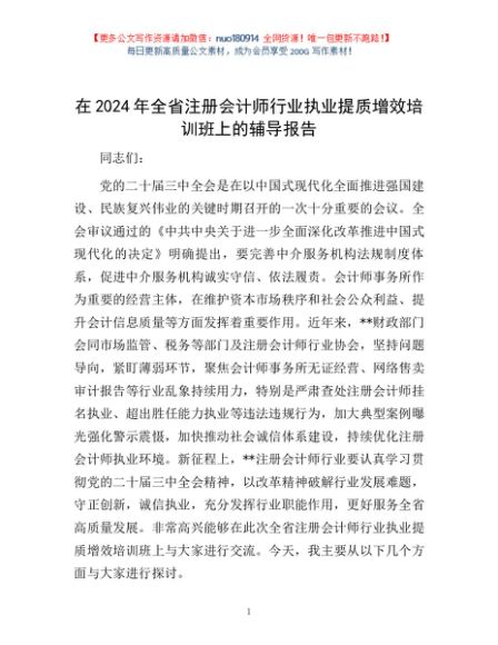/ 在2024年全省注册会计师行业执业提质增效培训班上的辅导报告