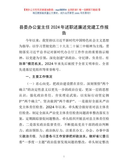 / 县委办公室主任2024年述职述廉述党建工作报告