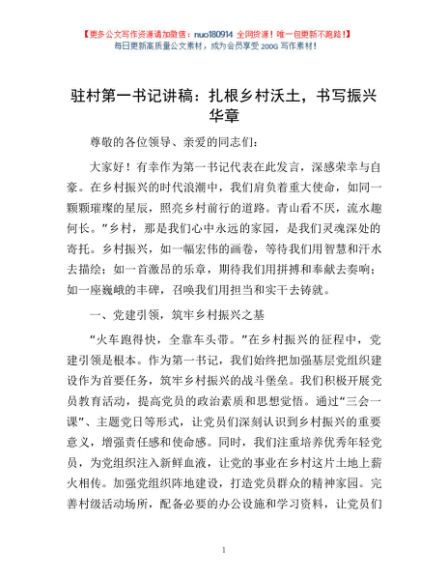 / 驻村第一书记讲稿:扎根乡村沃土,书写振兴华章