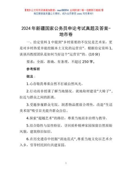 / 2024年新疆国家公务员申论考试真题及答案-地市卷