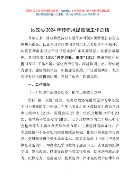 / 区政协2024年转作风提效能工作总结