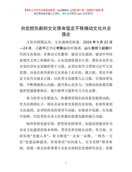 / 自觉担负新的文化使命坚定不移推动文化兴企强企