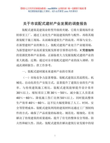 / 关于市装配式建材产业发展的调查报告