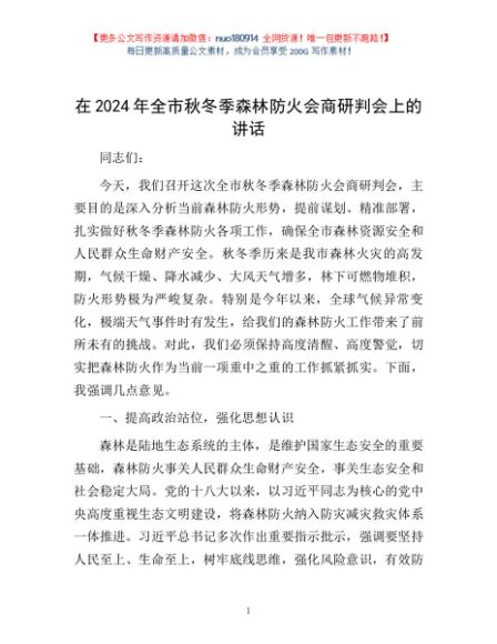 / 在2024年全市秋冬季森林防火会商研判会上的讲话