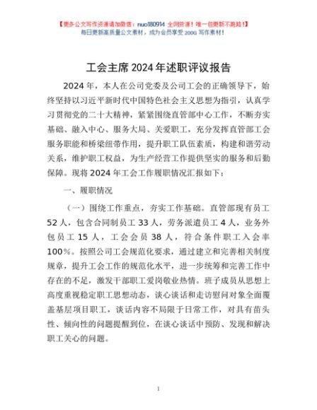 / 工会主席2024年述职评议报告