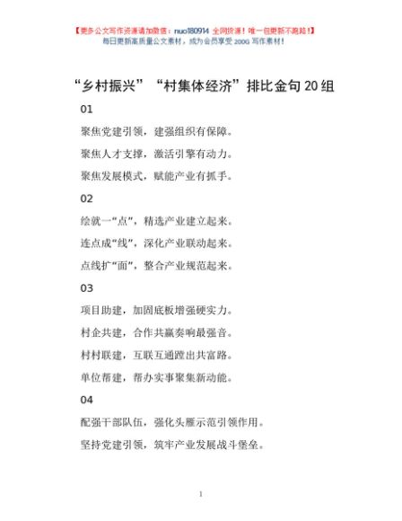 / “乡村振兴”“村集体经济”排比金句20组