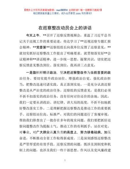 / 在巡察整改动员会上的讲话
