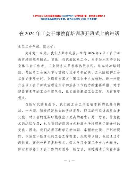 / 在2024年工会干部教育培训班开班式上的讲话