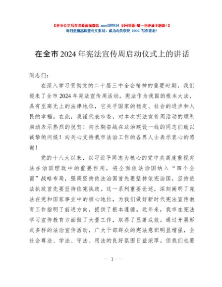 / 在全市2024年宪法宣传周启动仪式上的讲话