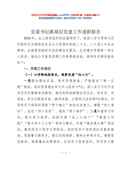 / 党委书记抓基层党建工作述职报告