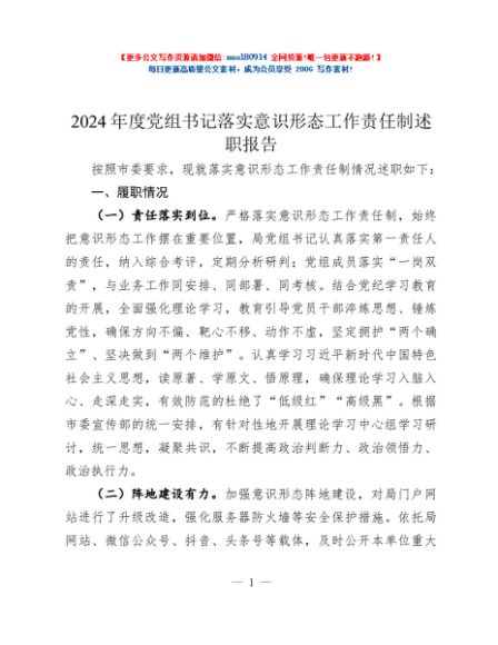 / 2024年度党组书记落实意识形态工作责任制述职报告