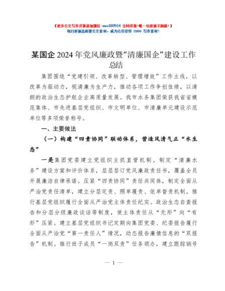 / 某国企2024年党风廉政暨“清廉国企”建设工作总结