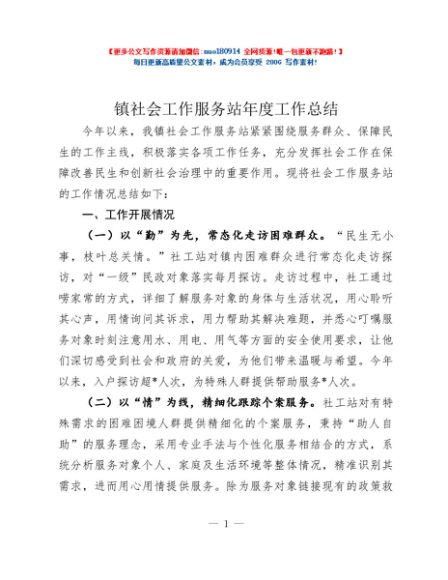 / 镇社会工作服务站年度工作总结