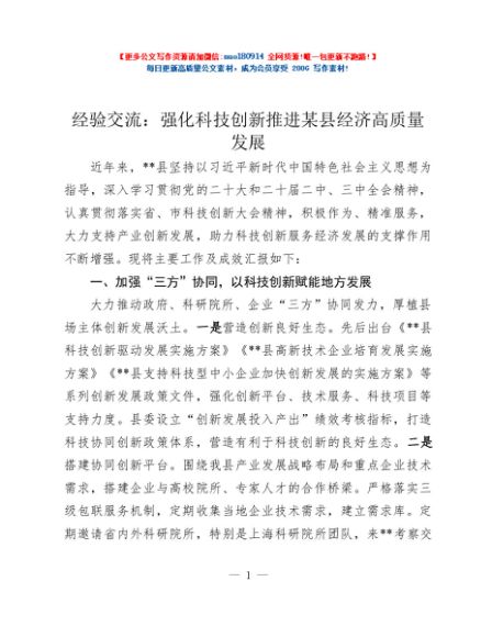 / 经验交流:强化科技创新 推进某县经济高质量发展