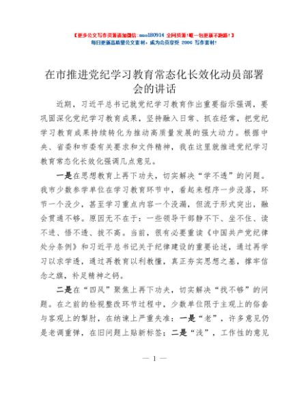 / 在市推进党纪学习教育常态化长效化动员部署会的讲话