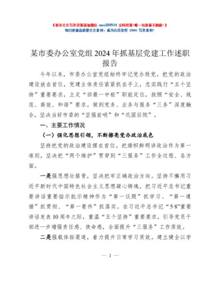 / 某市委办公室党组2024年抓基层党建工作述职报告