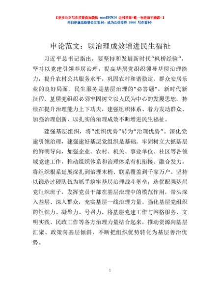 申论范文:以治理成效增进民生福祉