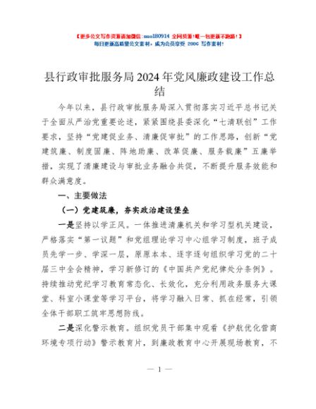 / 县行政审批服务局2024年党风廉政建设工作总结