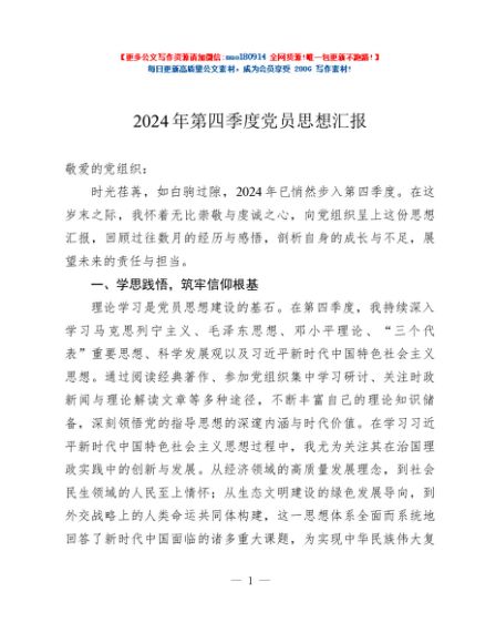 / 2024年第四季度党员思想汇报